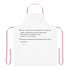 Let the home cook shine in the kitchen with a touch of character, the personalized chef's apron. This apron comes with a tie-back closure to fit securely, a sewn-in care label for guesswork-free maintenance, and a highly durable 100% polyester canvas construction for top-tier durability. Comes with black, beige, blue, pink, or white strap color, and in one size: 31.5" x 25.6".