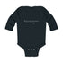 Any product designed for babies needs to hold up. The infant long sleeve bodysuit does just that. Solid colors are 100% cotton. Other colors will include polyester. Either way, the fabric will be smooth and soft against the young one's skin. There are plastic snaps at the cross closure for easy changing. All bindings have ribbed knitting for durability and improved range of motion.